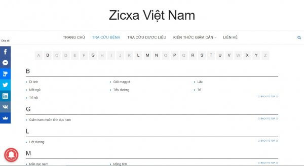 – Ở chủ đề này, Zicxa Việt Nam cho đăng các thông tin về những loại bệnh, những căn bệnh thường gặp và bệnh hiếm gặp bao gồm các thông tin như: triệu chứng, nguyên nhân và cách phòng tránh. Ở đay có một điều vô cùng hay tại website này là tên các căn bệnh được xếp theo thứ tự chữ cái từ A đến Z để giúp độc giả có thể dễ dàng tra cứu và nhận biết cũng như phát hiện các triệu chứng bất thường của cơ thể trước khi bệnh trở nặng.